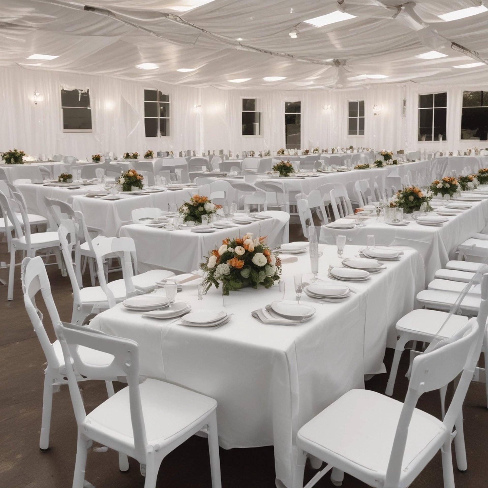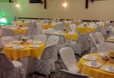 Mesas, cadeiras e toalhas para eventos incríveis.